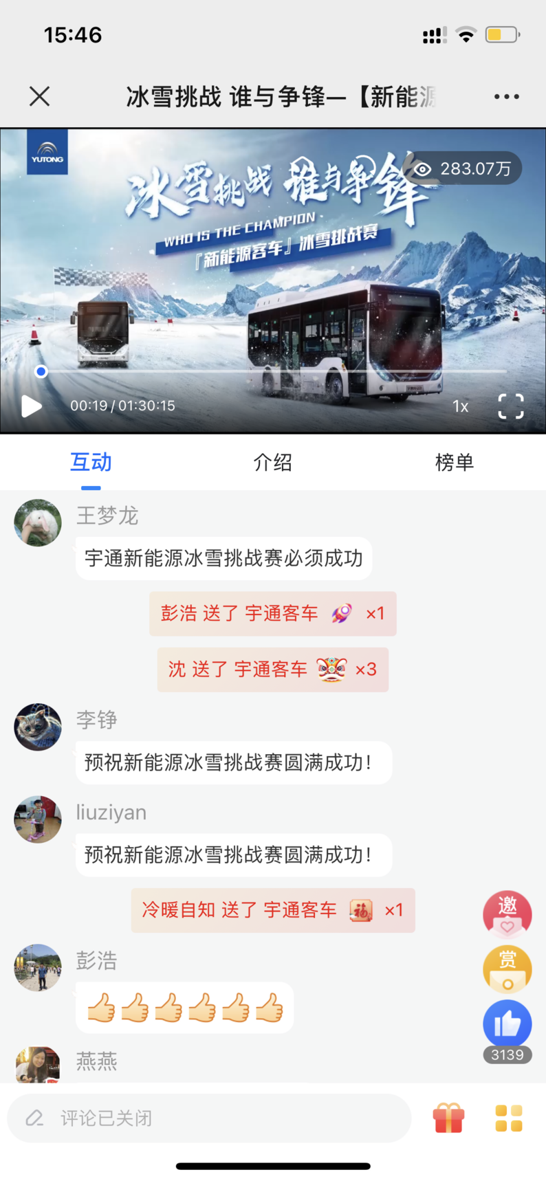 其中,最引起小编注意的是今年1月份举办的“新能源客车冰雪挑战赛”直播,通过这场在呼伦贝尔零下40度雪地的拉力赛,展示宇通客车在低温环境下,对于车辆动力差,电池性能低,续航里程低,整车能耗高等系列常规问题的“秘密策略”。不仅如此,这场直播还运用了微赞的榜单功能,通过用户分享,邀请等上榜赢奖品刺激,实现直播的快速引流,最终,本场直播获得283w 的观看热度。