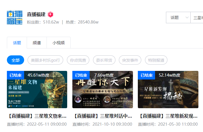 其中,以直播福建策划的“三星堆新发现-揭秘”为例,通过高清的摄录技术 专业化的深度解读 故事化的表达方式,让用户“身临其境”感受现场,见证文物出土瞬间。