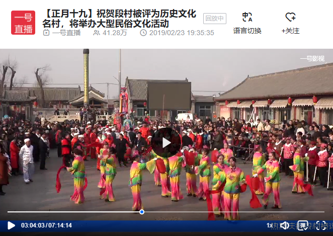 如拥有千年历史文明的文化名村:山西省交城县段村在微赞上举办的“云直播游民俗文化活动”,通过高清摄录及直播传播技术带网友欣赏历史名村内的建筑青砖、素瓦、高墙、深宅。“浸入式云直播”更是让用户获得身临其境的体验感。它利用全景高清摄录、多画面拼接渲染、让锣鼓地秧歌、握棍、背棍、铁棍、狐突教子礼等非遗传承展示体验等让呈现的节目精彩不断。