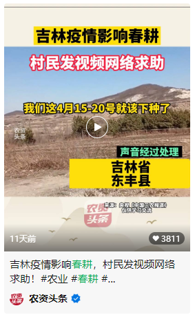 当下正值北方的春耕时节,但吉林等地受疫情和天气影响春耕面临时间紧、农资到位率低、农工技术人员工作开展难等诸多问题。